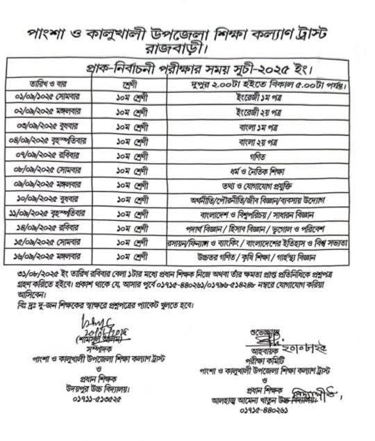 সকল প্রধান শিক্ষক মহোদয়গণকে নির্ধারিত সময়ে পরীক্ষা গ্রহণপূর্বক খাতা উত্তরপত্র সহকারে ২৩/০৯/২০২৫ তারিখের মধ্যে অফিসে জমা দিতে হবে।